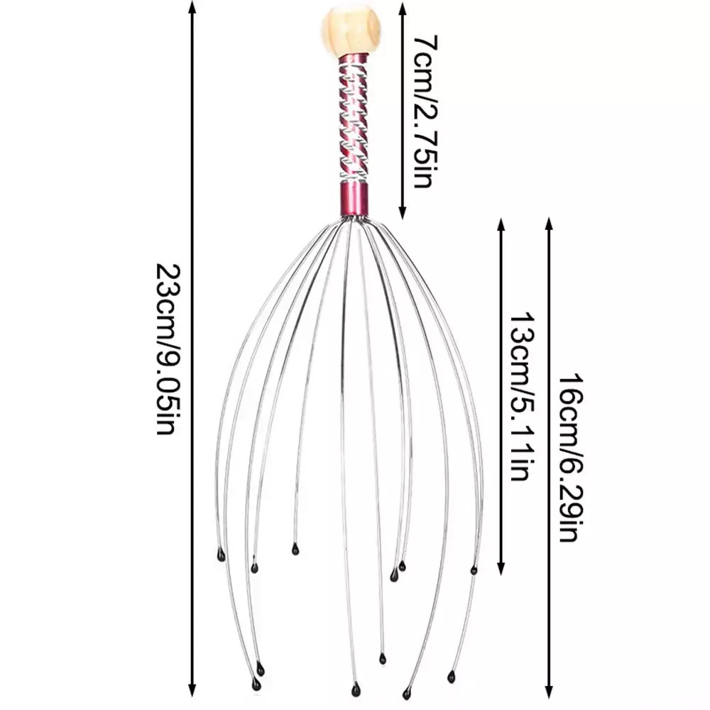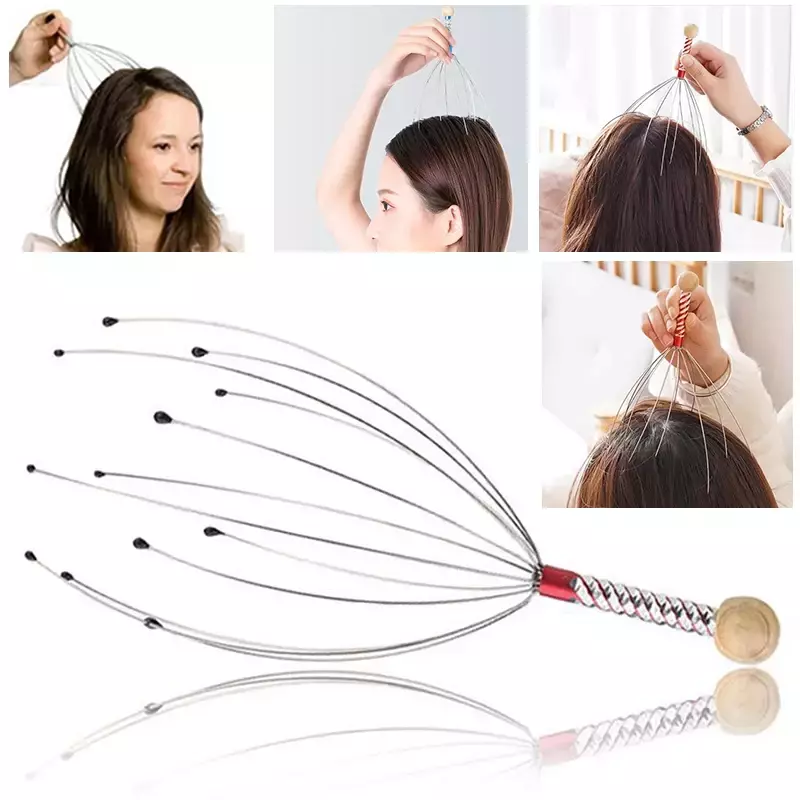 1pc polvo cabeça massageador de aço inoxidável gravado cabeça relaxante cérebro massagem garra couro cabeludo arranhador coceira aliviar cor aleatória