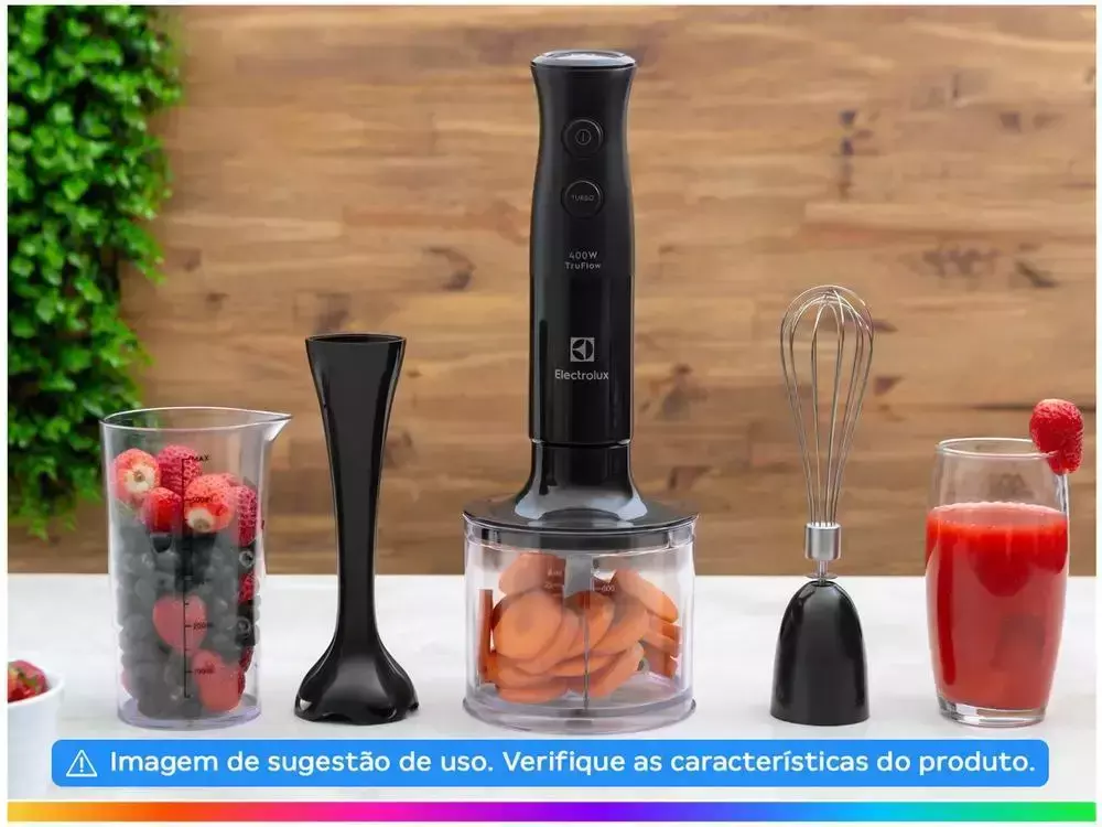 Que tal atingir a melhor textura no preparo de sucos, vitaminas e outras receitas? Com o Mixer 3 em 1 Electrolux, você alcança a consistência correta para cada tipo de preparação, devido à Tecnologia TruFlow™, que reduz a formação de bolhas de ar, deixando suas receitas mais cremosas e homogêneas. O Mixer 3 em 1 Electrolux possui 400W de potência e Função Turbo, capaz de processar e triturar grãos, queijos e outros ingredientes para a preparação de suas deliciosas receitas. Equipado com copo com 600ml de capacidade, batedor de claras e mini processador de alimentos, o Mixer 3 em 1 é um aliado à praticidade que sua rotina precisa. A haste é livre de Bisfenol A e parabenos, portanto, não oferece riscos para sua saúde. Com cabo de 1,2 metros, você têm mais autonomia ao manusear o Mixer, além da alta qualidade que os eletroportáteis Electrolux oferecem. CARACTERÍSTICAS TECNOLOGIA TRUFLOW™: Reduz a formação de bolhas de ar, garantindo uma textura mais cremosa e homogênea. POTÊNCIA DE 400W: Potência ideal para preparar deliciosas receitas. FUNÇÃO TURBO: Tritura até os alimentos mais difíceis. ACESSÓRIOS: Copo 600ml, Mini processador de Alimentos e Batedor de Claras. BPA FREE: Haste do produto Livre de Bisfenol A, substância altamente tóxica ao organismo. CABO DE 1,2 METROS: Mais praticidade para preparar suas receitas.