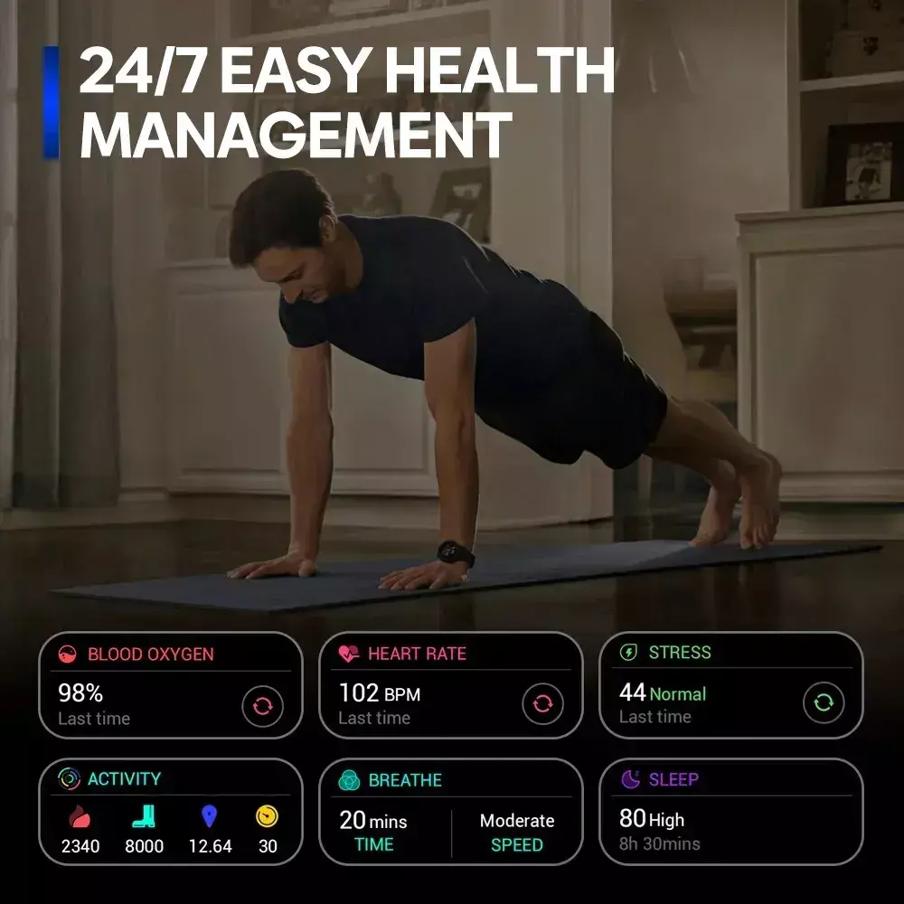 Compatível com dispositivos iOS e Android, o aplicativo Zeblaze Fit conduz análises de dados de saúde e condicionamento físico, apresenta mostradores de relógio e lojas de aplicativos, fornece atualizações de sistema para o seu relógio e muito mais.