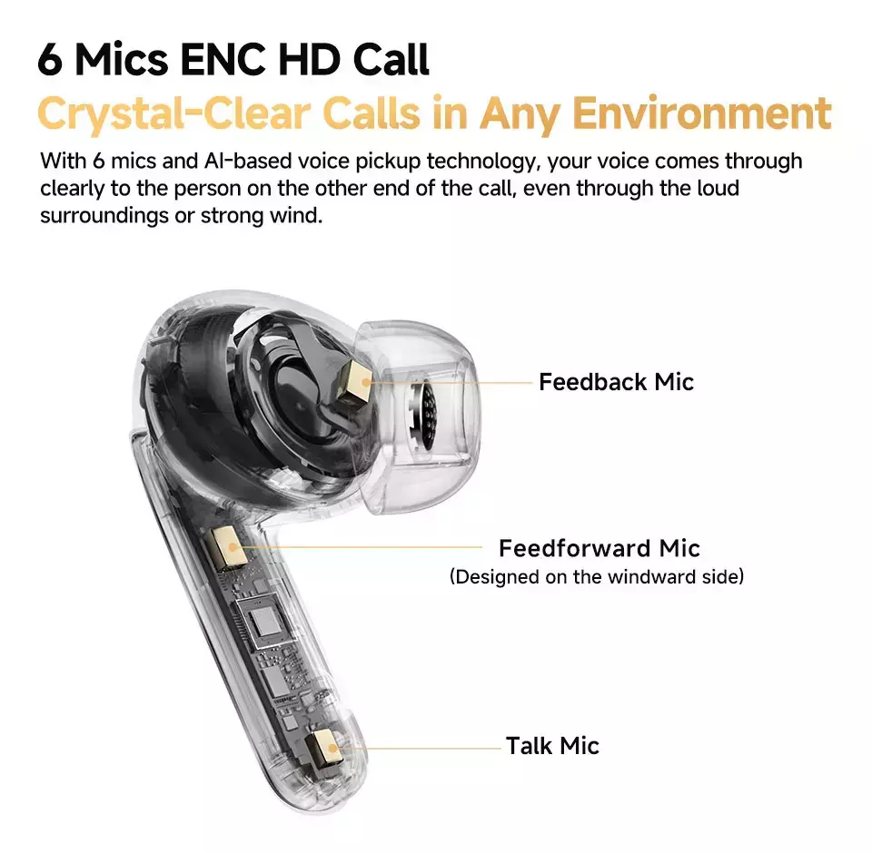 Com 6 microfones e tecnologia de captação de voz baseada em IA, sua voz chega claramente para a pessoa na outra extremidade da chamada, mesmo através de ambientes barulhentos ou vento forte.
