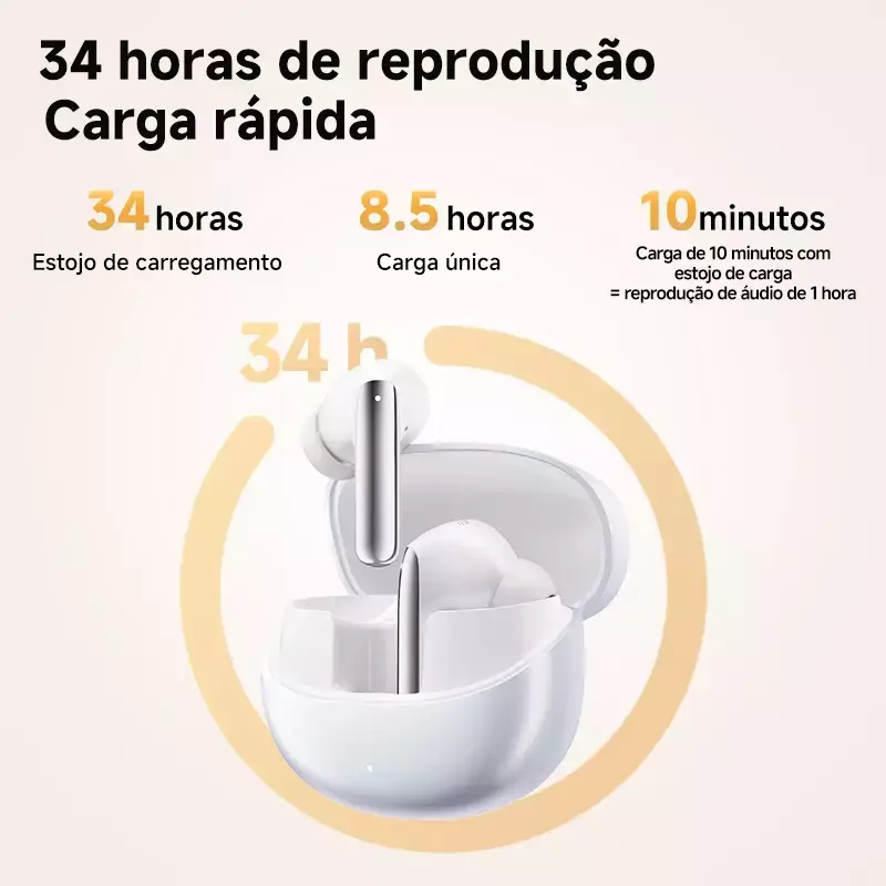 Eles fornecem até 8,5 horas de audição com uma única carga,com o estojo de carregamento que oferece 3 recargas adicionais para reprodução prolongada de música.Além disso, obtenha até 1 hora de reprodução com uma carga rápida de 10 minutos.